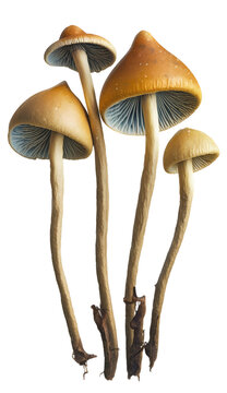 Psilocybe semilanceata, commonly known as the liberty cap, is a species of fungus which produces the psychoactive compounds psilocybin, psilocin and baeocystin. It is both one of the most widely distributed psilocybin mushrooms in nature, and one of the most potent. The mushrooms have a distinctive conical to bell-shaped cap, up to 2.5 cm (1 in) in diameter, with a small nipple-like protrusion on the top. They are yellow to brown, covered with radial grooves when moist, and fade to a lighter color as they mature. Their stipes tend to be slender and long, and the same color or slightly lighter than the cap. The gill attachment to the stipe is adnexed (narrowly attached), and they are initially cream-colored before tinting purple to black as the spores mature. Buy Liberty Cap Online